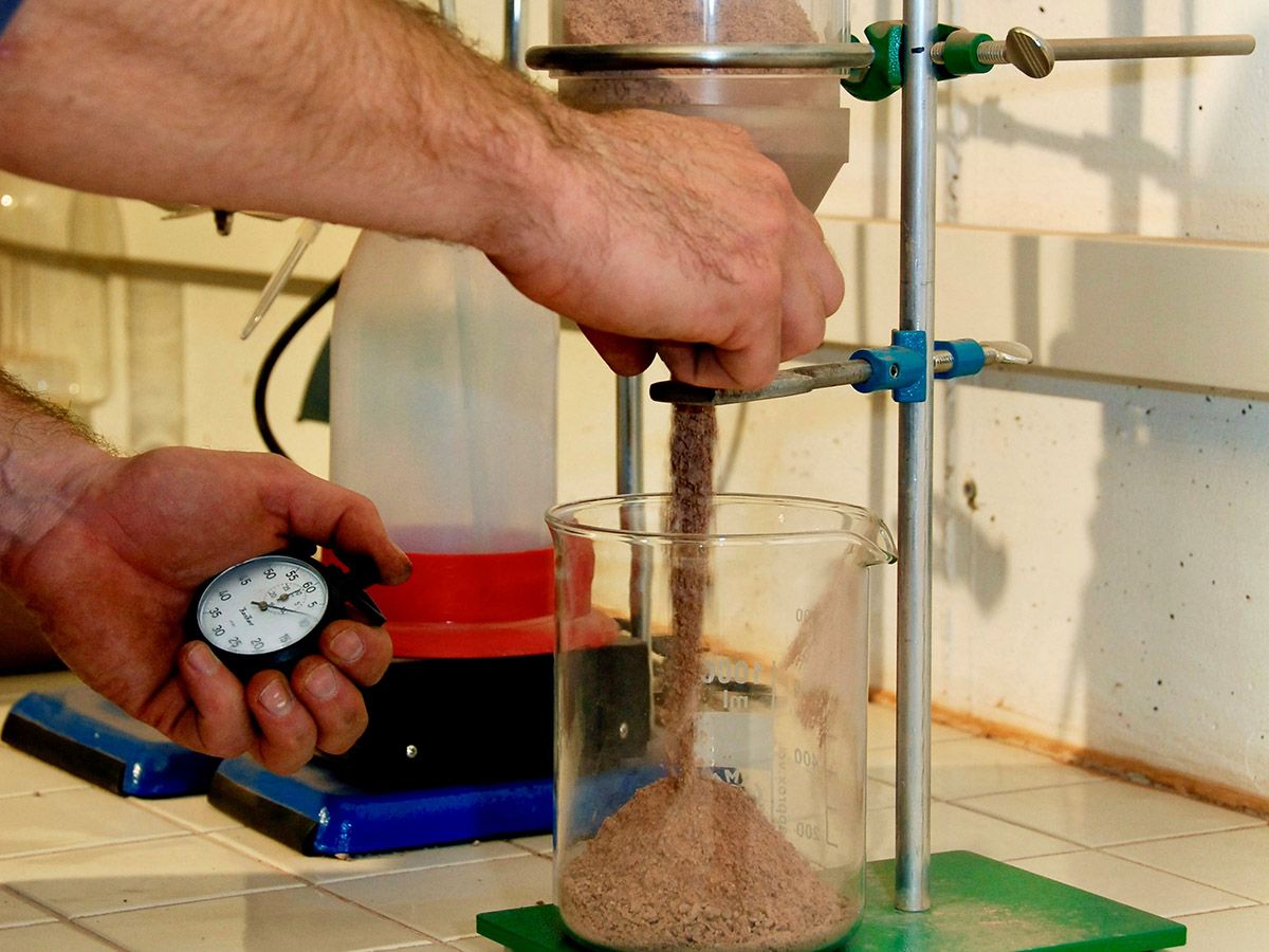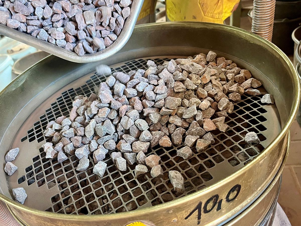 Alle Produkte unterliegen regelmäßigen Qualitätskontrollen, wobei die Mehrzahl der erforderlichen Untersuchungen im Rahmen der Werkseigenen Produktionskontrolle (WPK) in unserem werkseigenen Gesteinslabor durchgeführt wird. Darüber hinausgehende Prüfungen werden von externen Labors vorgenommen.